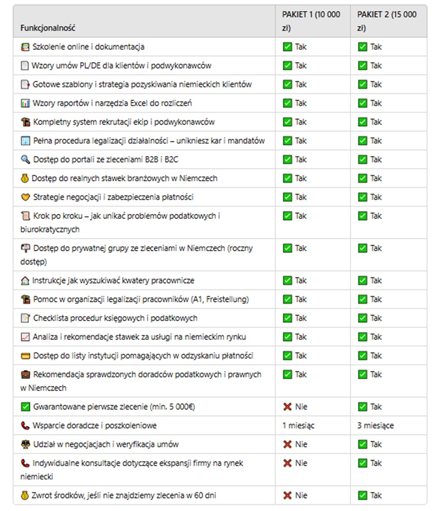 ✔️ W pakiecie 2 (15 tys. zł) masz gwarantowane pierwsze zlecenie (min. 5.000€), więc od razu zaczynasz działać.
